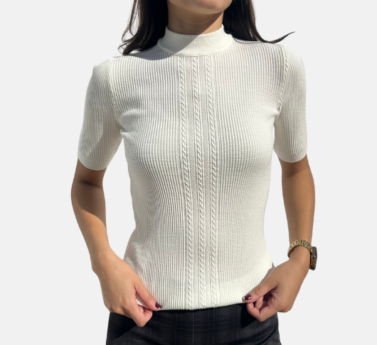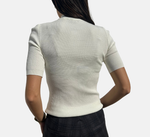 Tricot Chic - Short Sleeve Cabe Knit Top in Cream