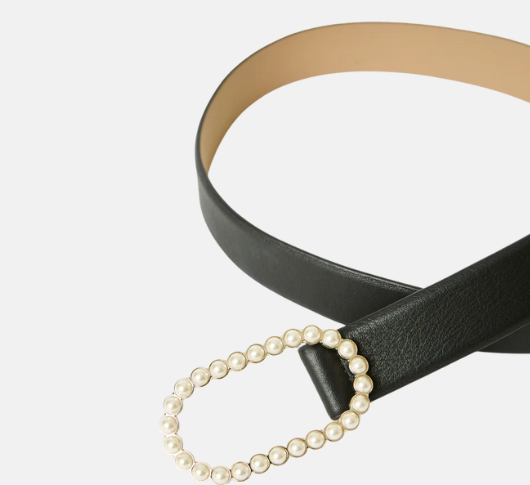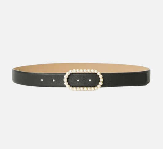 B-Low the Belt - Lilith Leather Belt with Pearl Buckle in Black and Gold