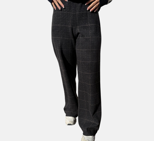 Raffaello Rossi - Charcoal Plaid Pant with Camel Stripes in Dark Gray