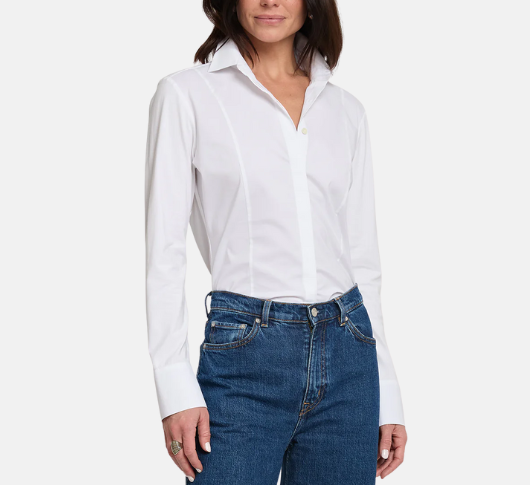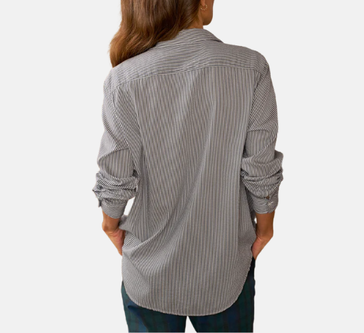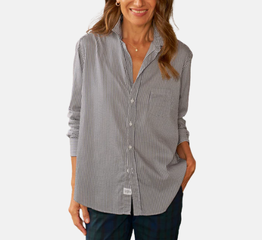 Frank & Eileen - Relaxed Button Up in White with Sliver Stripes