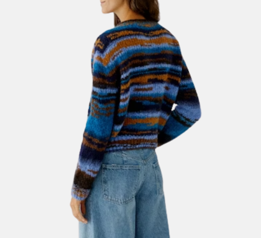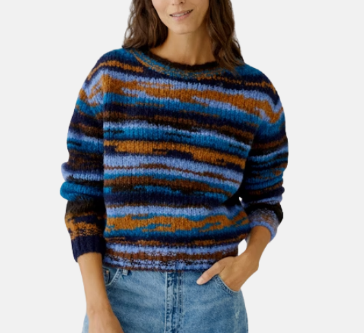 Oui - Multi Stripe Wool Sweater in Blue and Camel