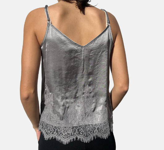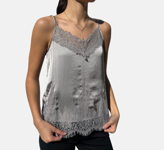 Oui - Cami with Lace in Grey