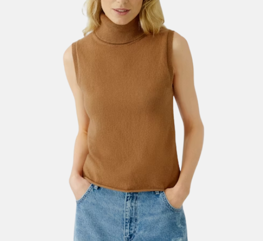 Oui - Knit Sleeveless Turtleneck Top in Camel
