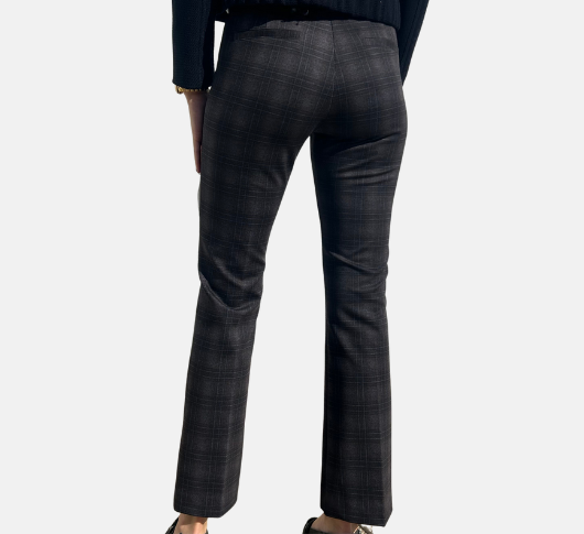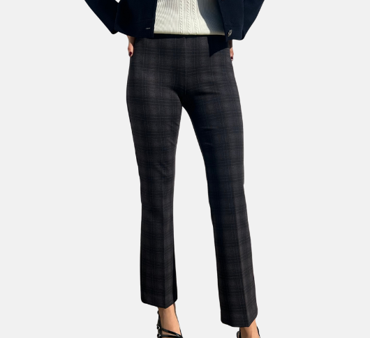 Elliott Lauren - Elastic Waist Plaid Pant in Chocolate and Charcoal