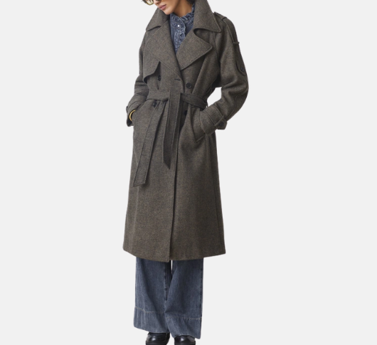 Suncoo - Emo Long Wool Coat in Chocolate