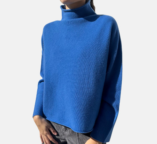 Frances Valentine - Long Sleeve Mock Neck Cotton Sweater in Navy
