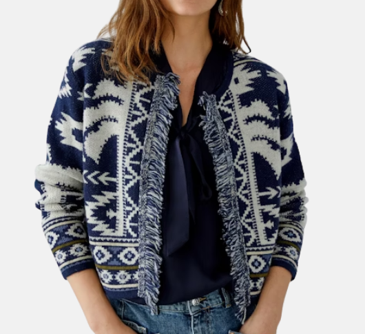 Oui - Fringe Cardigan Sweater in Dark Blue and White