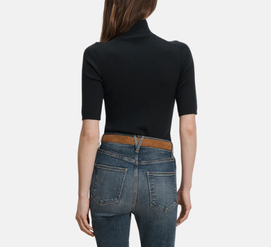 Veronica Beard - Short Sleeve Mock Neck Knit Sweater in Navy