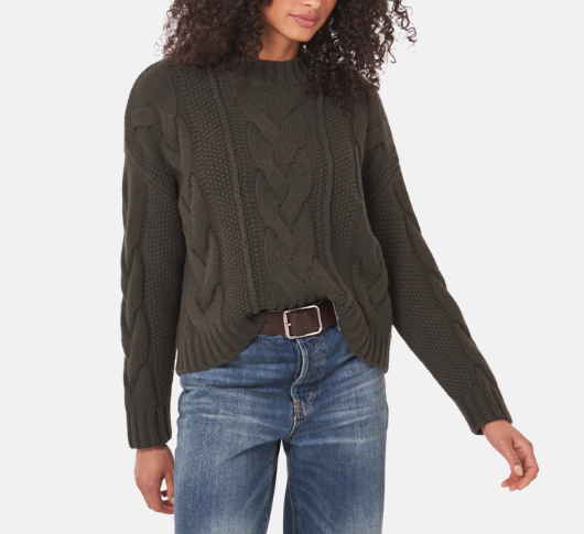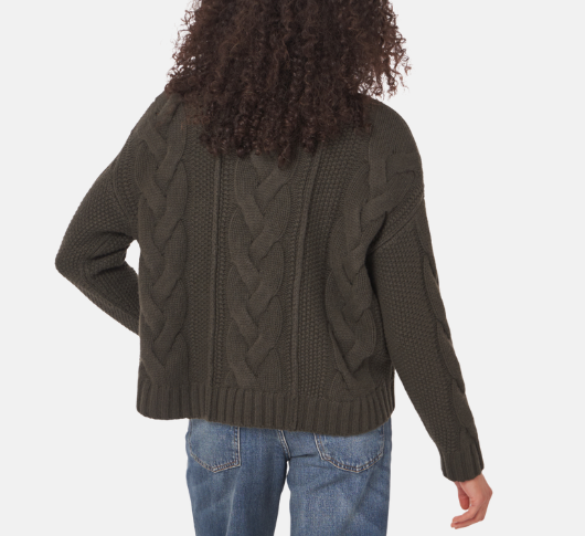 Oui - Cropped Cable Crewneck Sweater in Burnt Olive