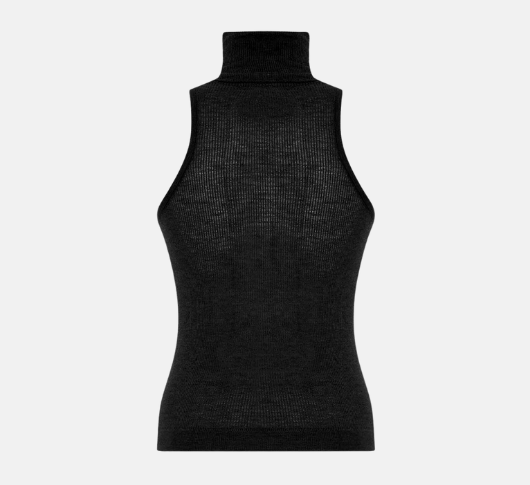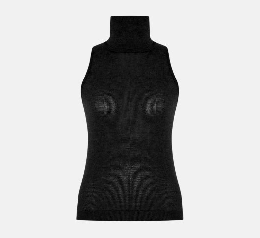 Theo - Sheer Knit Sleeveless Top with Turtleneck in Black