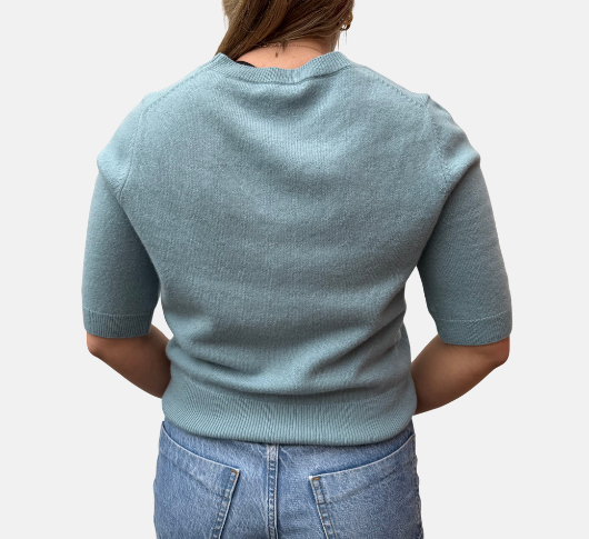 Veronica Beard - Short Sleeve Crewneck Cashmere Sweater in Antique Blue